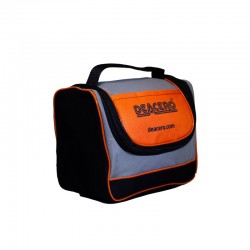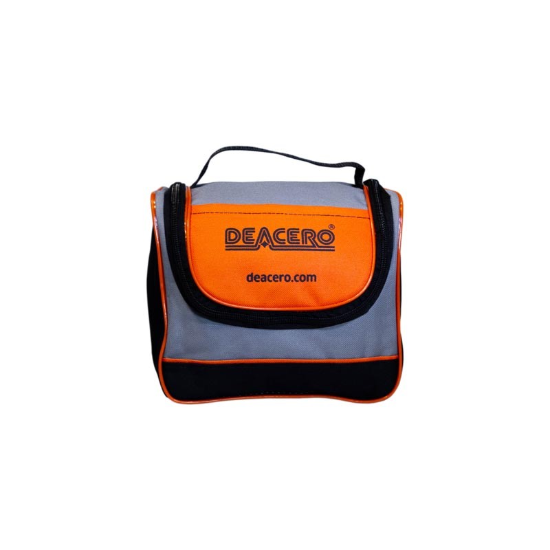 Lonchera tricolor negra/naranja/gris nylon cosida y con logo impreso DEACERO a un tono