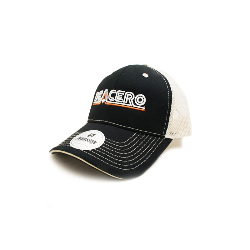 Gorra %60 algodón y %40 poliester negra con beige y/o negra con blanco, logo Deacero bordado a 2 tonos.