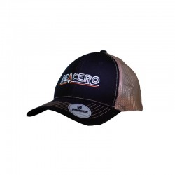 Gorra %60 algodón y %40 poliester negra con beige, logo Deacero bordado a 2 tonos.