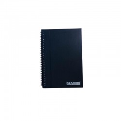 Libreta tipo piel artificial (curpiel) en negro con espiral y logo impreso Deacero en blanco